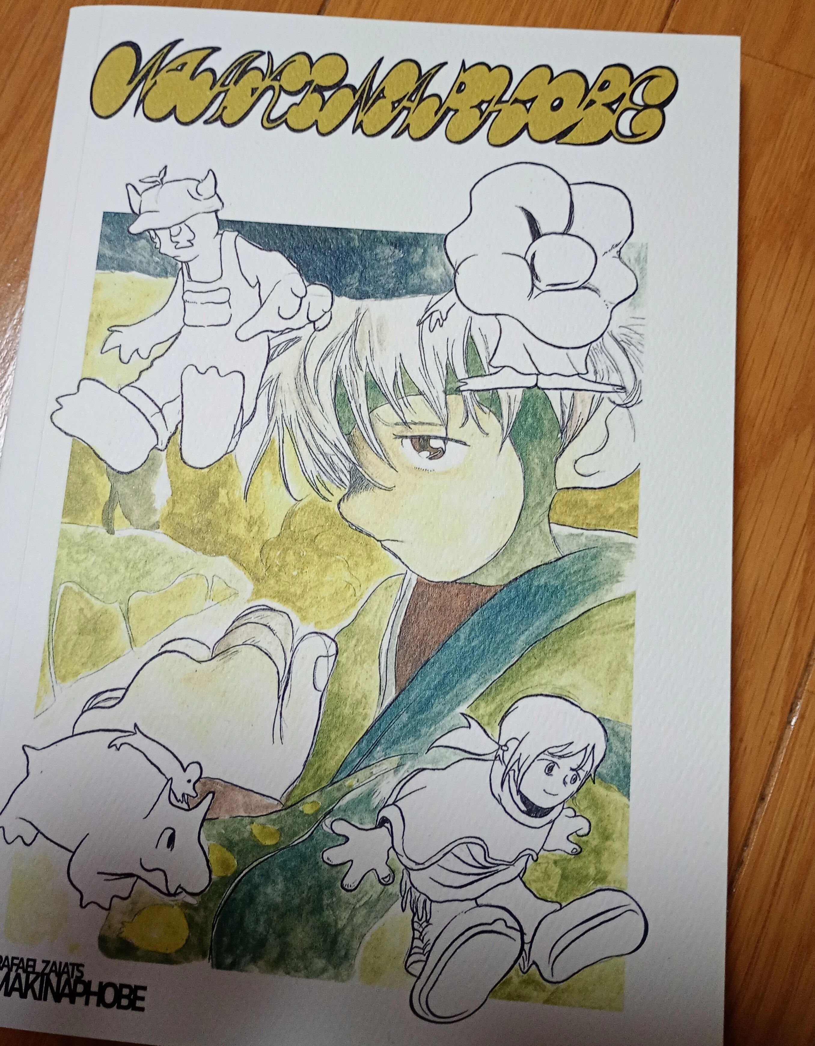 zineという語がよく使われるようになったからこそ、自分なりの定義を説明する必要がある。パンクとかアングラといったことばを使うのと同じで、それ単体ではもはや何も言ってないのと同じみたいだ。昔、自分が作り始めた2008年ごろ(今のように個人古書店が大量にできてはすぐに消えていったような・・・)、zineという呼称はあまり使われていなかった。フリーペーパーかミニコミが多数で、zineは「フルカラーのおしゃれな写真で高い金とってるやつ」と揶揄されていた場面に出くわしたことがあるくらいだった。極端な意見だと思うが、最近は大手の雑誌の付録がまさにそんな感じになっていて、あの頃と同じではないことを実感できる。 少しずるいが「〇〇とは違う」という消去法的な自己紹介もありだ。反ではなく非。ずるくない(と思われるような)答えも用意しなければいけない場合、zineは個人ないし少人数が無料またはワンコイン程度の価格で頒布されるものとしている。商業的利益を目的として作られていない、広くはないが確かに横へとつながるためのもので、過度な告知・宣伝もしない。「企業じゃなくても、大手メディアじゃなくても同じことができます」というアピールは、その実同じ土俵へ立つという目的が感じられる。だからzineは個人で完結していてほしい。手にとる側から近寄っていけばいいだけなので。こうした考え方の源は、こうした個人サイト上で何かしら発信することを経ていたことが大きい。古くからやっている人たちと決定的に感覚が違うとすれば、ここだろう。 もう一つ、最近よく使う気がしている「アートブック」はイラストレーターやマンガ家が発行した作品集というイメージだ。ポーランドやドイツ、今年実験的に芸術家への支援を導入したアイルランドといった、政府からの助成金をもって作られた雑誌もこう呼んだ方がいいかもしれない。ラトビアの『kuš!』とかフィンランドの『kutikuti』、クラクフで作られている『ZK』など、手元にあるものに限るが、これらはフルカラーかつ上質な印刷で作られている。そして分厚い。 ロンドン東にあるアナーキーな書物だけを扱うFreedom Book Shopにて購入した『One way ticket to cubesville』。中身はアナーコパンクバンドのインタビューなど。パレスチナ連帯・イスラエル軍の侵略と虐殺に反対するコーナーの横には、さまざまな少数派言語(話者が少ないという意味)によるプラカードが配布されていたので、こちらも持ち帰っておくべきだった。🍉のポストカードもあったので、そちらは購入。この書店は『The Raven』という80年代のアナーキー雑誌のバックナンバーも扱っていたため、この機を逃す手はないとそちらも買った。 ![]() わたしの中では次にくるというかきているマンガこと『Fool Island』の著者ラファエル・ザイアッツ(トビリシ在住)が、同作の前に発表したマンガ『Makinaphobe』。アメリカのStrangers Publishingから出た立派な単行本であるため、zineの規模ではない。アニメ『カイバ』のようなタッチで描かれるほぼほぼサイレントマンガ。これを経て都市(と古代)が舞台の群像劇『Fool Island』に至る。本作から発見したものに作者自身がつき動かされてるようで、その勢いが読んでて頼もしい。